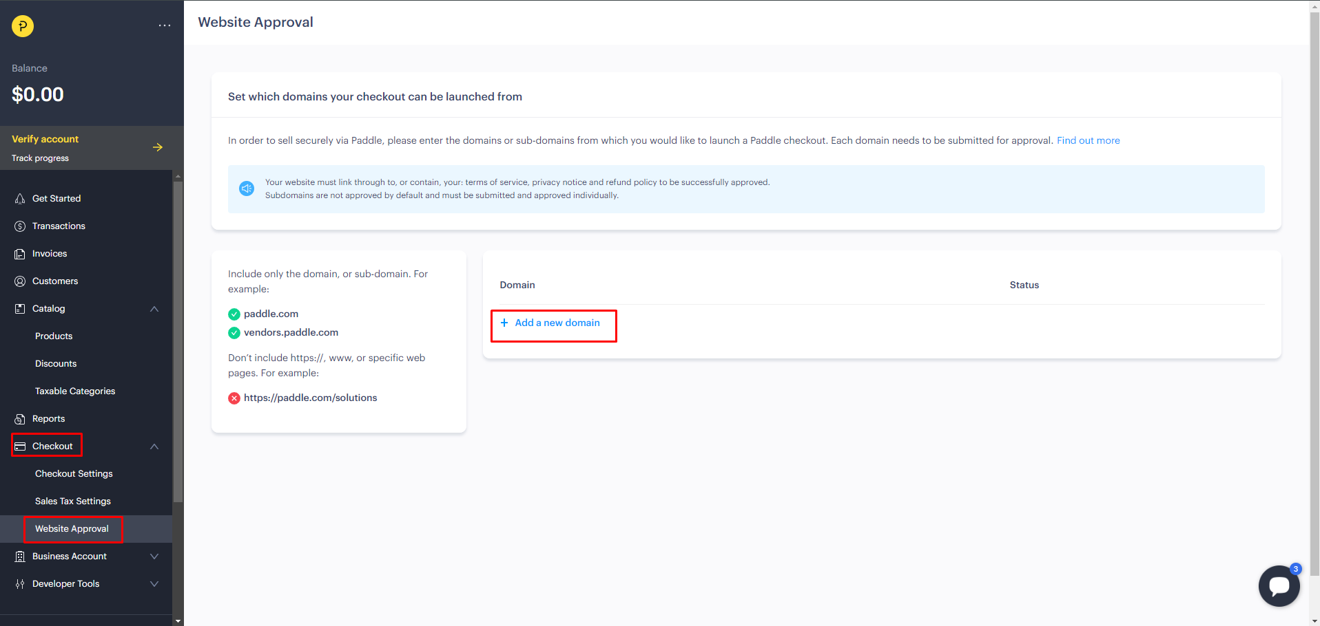 2. Now go to Checkout > Website Approval