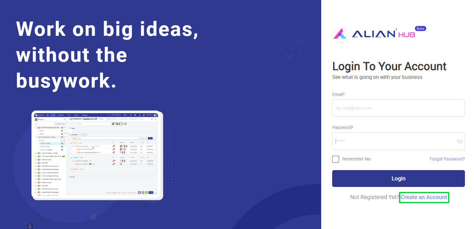 To begin using Alian Hub, you first need to create an account.